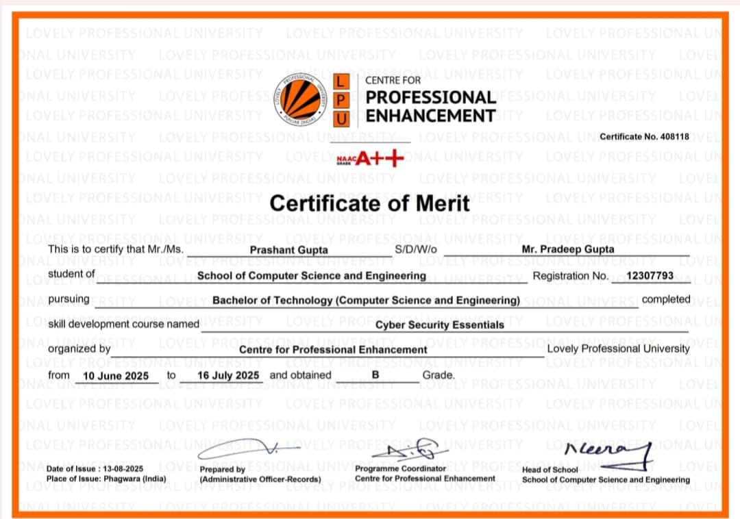 I'm Prashant Gupta, a Computer Science & Engineering undergraduate at Lovely Professional University. My academic journey has been fueled by a deep curiosity for how software systems work and how they can solve real-world problems.